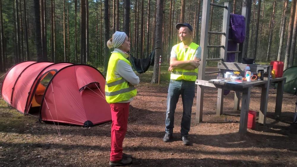 Upea alkusyksyn päivä ja monipuolinen ohjelma houkuttelivat Lykynlammen Satumetsään ennätyksellisen määrän lapsiperheitä. Joensuun Latu oli pystyttänyt alueelle telttakylän, jossa pääsi tutustumaan paitsi erilaisiin telttoihin, keittimiin ja retkivarusteisiin, myös paistamaan makkaraa ja kokeilemaan nukkumista riippumatossa. Varusteita ja Ladun toimintaa esittelivät mm. retkeilykonkarit Tuula ja Hannu.