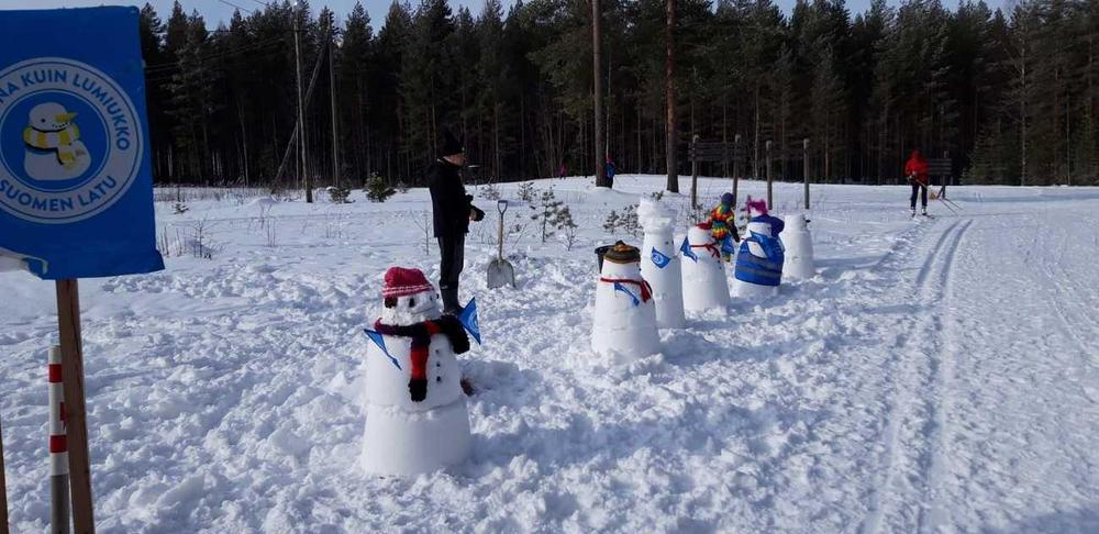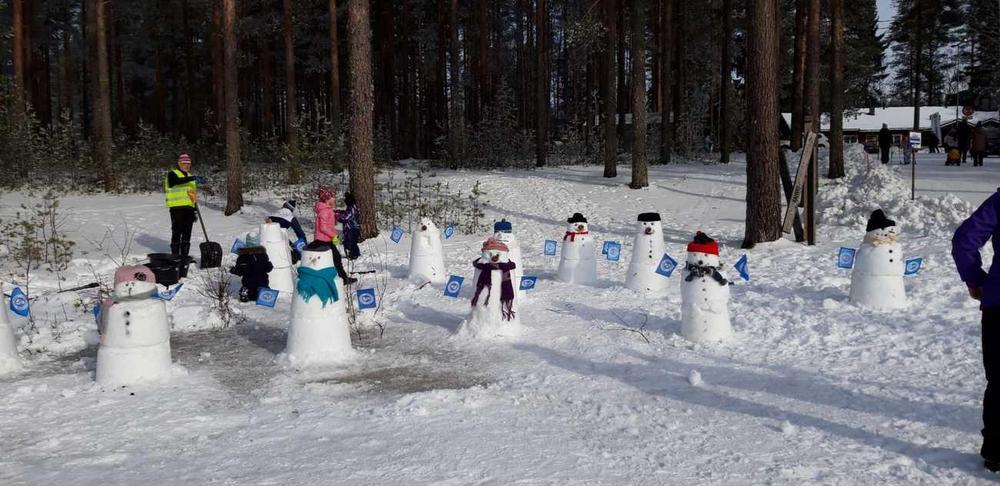 #UlkonaKuinLumiukko-kampanjan loppurutistuksessa syntyi Lykynlammelle 31 lumiukkoa.