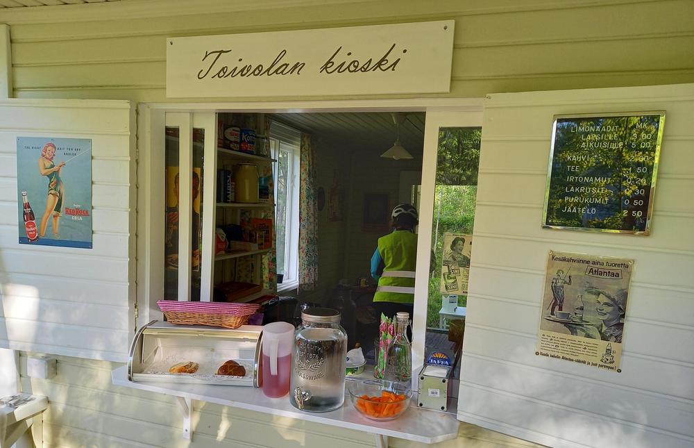 Tiistain iltapyöräilyissä kohteet ja kelit vaihtelevat. Kesäkuun ensimmäisen päivän aurinkoisessa illassa suunnattiin Kontiorannan entiselle varuskunta-alueelle ja pyörähdettiin Karjalan kunnaitten Miikkulan kylässä; molemmista on jäljellä muistot vain. Nostalgiapläjäyksen kruunasi tauko Toivolan kioskilla, jonka isäntäpari Kirsi ja Kari olivat meitä varten ystävällisesti avanneet. He esittelivät kioskin historiaa, joka yltää aina 1940-luvulle saakka. Kioskin kunnostus ja sisustaminen 60-luvun hengessä on ehdottomasti kulttuuriteko!