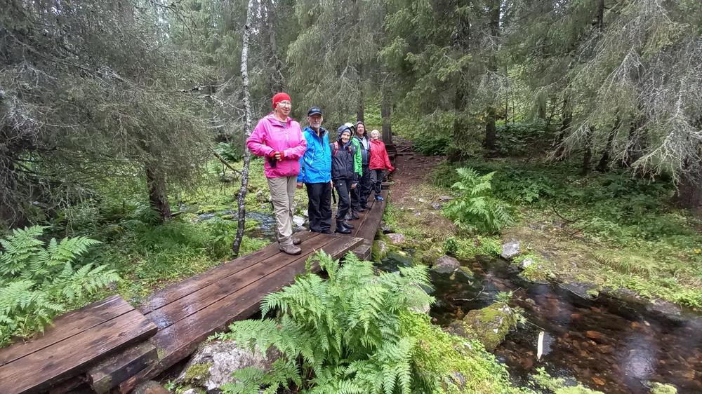 Tihkuinen päivä ei houkutellut pyöräilyyn, joten päätimme lähteä jalkapatikassa tutustumaan Yllästunturin luontokeskuksen Kellokkaan näyttelyihin. Sieltä käsin kävelimme vielä Varkaankurun luontopolun. Päivän liikunta-annos: 15 kävelykilometriä.