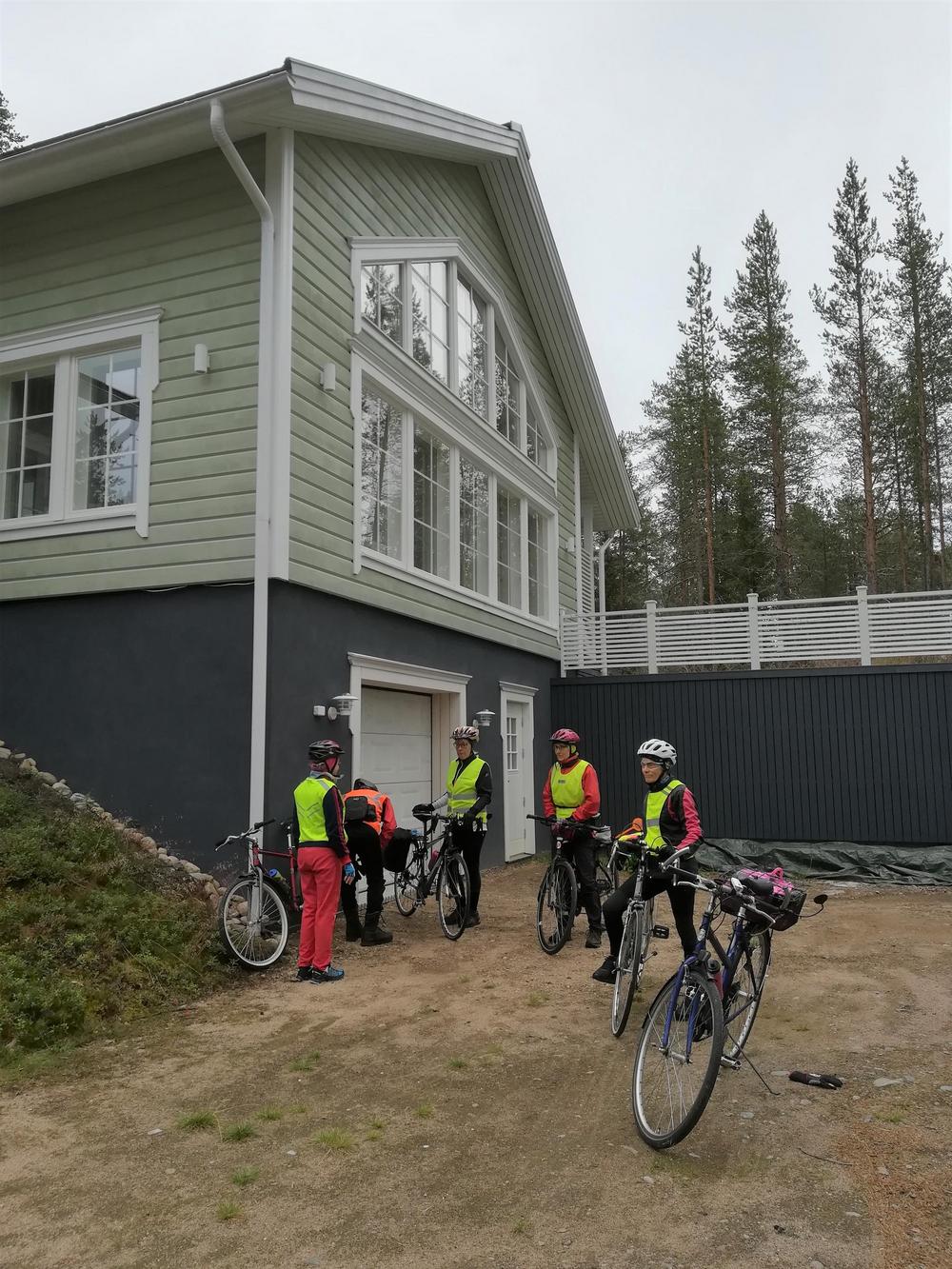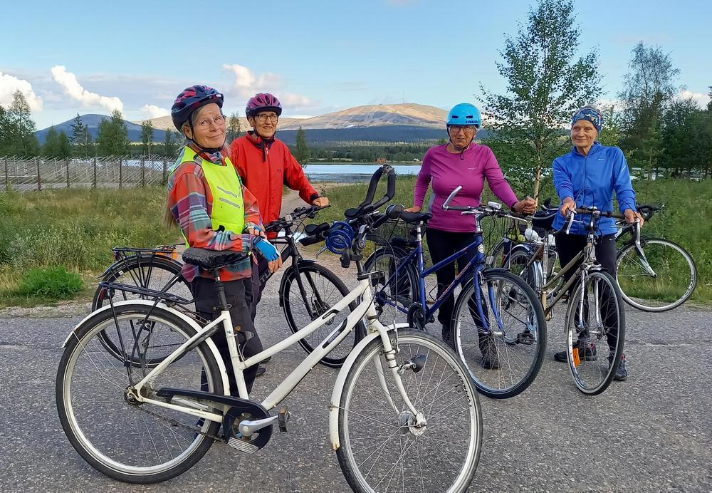 Ilkka autoineen ja peräkärryineen helpotti pyöräilytaivalta niin, että osa porukasta matkasi Äkäslompolon ja Muotkavaaran välin joko meno- tai paluumatkalla autossa. Pyöräilykilometrejä kertyi 65 – noin 100 km.