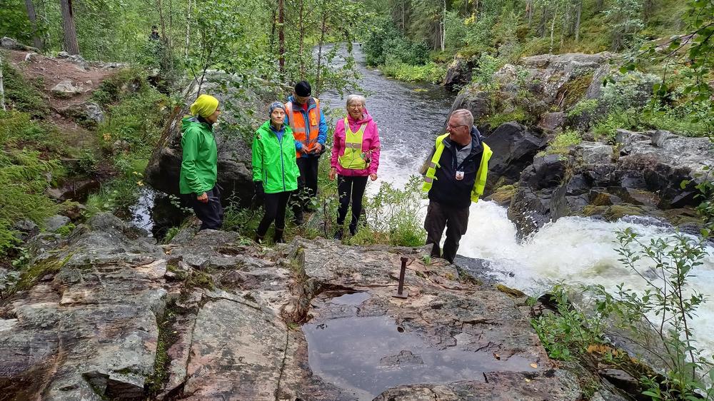 Illansuussa Ilkka vei meidät katsomaan Kuerlinkat-nimisiä putouksia. Kummallinen, saamelaisperäinen nimi tarkoittaa Taimenputouksia. Kuerlinkoille ei ole maastossa opasteita, joten opasta tarvittiin. Pyöräilykilometrejä ensimmäiselle päivälle kertyi reilut 70 km.