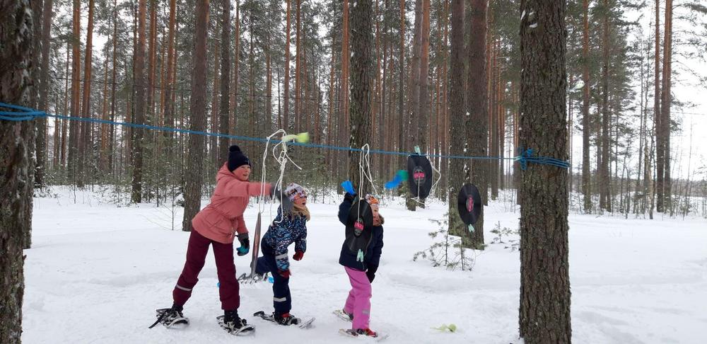 Retkihemulit hiihtivät ladulla ja umpihangessä, rakensivat lumiukkoja ja lumikenkäilivät.
