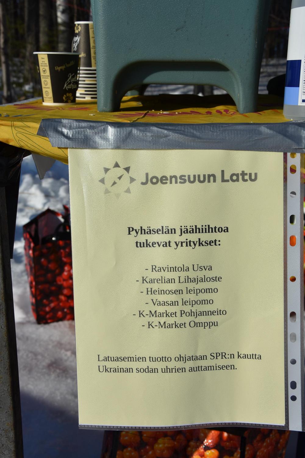 Pyhäselän jäähiihtoon 13.3. osallistui reilusti yli 1000 hiihtäjää. Aurinkoinen ja lämmin sää suosi hiihtäjiä parin talven tauon jälkeen. Pyhäselän jäähiihdon latukahviot tuottivat huikean summan, 6295 €. Tämä summa lahjoitetaan kokonaisuudessaan Ukrainan sodan uhreille. Kiitos hiihtäjille ja latuasemien asiakkaille!