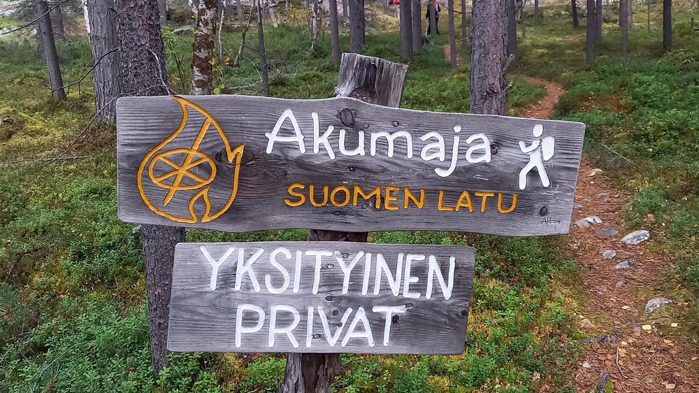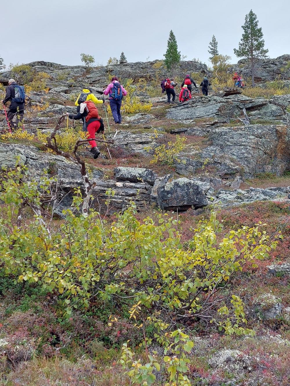 Tuulan ja Pilvin opastamana ja suunnistaen kuljimme ja patikoimme ihanassa ruskassa mm. Bogejohnjunnille kiertäen Akuputoukselle. ”Poromiehen” vinkkaamana suunnistimme Nuvvus-Ailigakselle, josta avautui upeat näkymät Tenojoelle ja Norjan puolelle. Ehdimme myös Sulaojan luontopolulle ja Giellajohkaan, jossa nautimme maistuvat ateriat ja ihastelimme Lapin lintuja ruokintapaikalla. Akumaja tarjosi upeat puitteet ruskaretkelle, saunassa saimme mahtavat löylyt ja kastautuminen Akujoessa virkisti. Viimeisenä iltana liittyi Paistunturien kymmenhenkinen vaellusryhmä joukkoomme. Revontulia emme nähneet, mutta kirkas tähtitaivas korvasi sen.