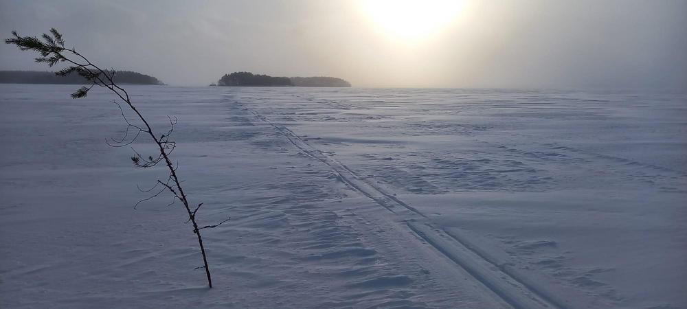 Vain sitkeimmät hiihtäjät lähtivät Pyhäselän jäälle sunnuntaina 12.3. Lumisade oli tukkinut ladut yöllä, sadetta ja tuulta riitti pitkin päivää, eivätkä latujen kunnostajatkaan voineet luonnonvoimille mitään. Lauantai-illan Otsalamppuhiihdossa Pyhäsaaressa kävi noin 60 hiihtäjää, sunnuntaina huomattavasti vähemmän. Rannan tuntumassa tuuli ei kiusannut niin paljon ja Kuhamajan rantaan tuuli ei yltänyt lainkaan. Aurinko alkoi pilkistellä iltapäivällä ja keli oli parhaimmillaan, kun oli latuasemien sulkemisen aika.