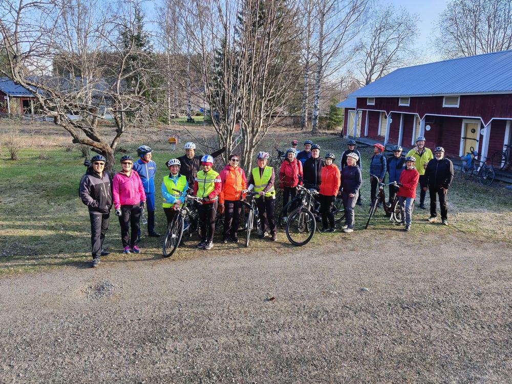 Tiistain 9.5. iltapyöräilyllä aurinkoisessa ja lämpimässä kevätsäässä oli reilut 20 pyöräilijää. Ollilan tuvalla Mattisenlahdessa nautittiin kahvia, särvintä ja virvokkeita. Tuvassa kuultiin myös Ollilan tuvan historiaa ja tietoa toiminnasta. Mukava ja leppoisa tunnelma.